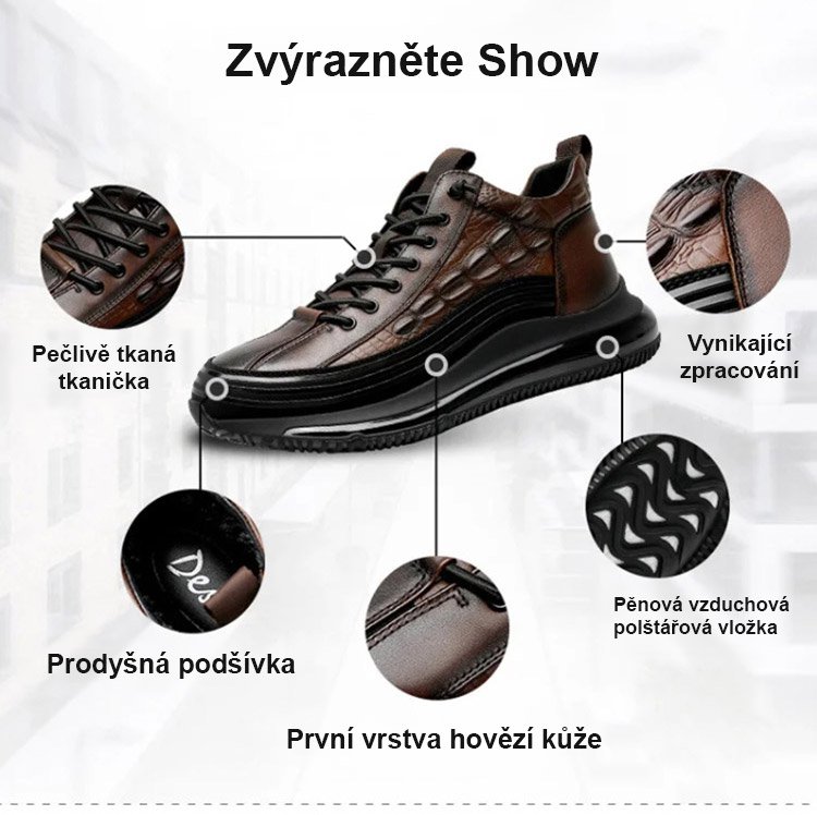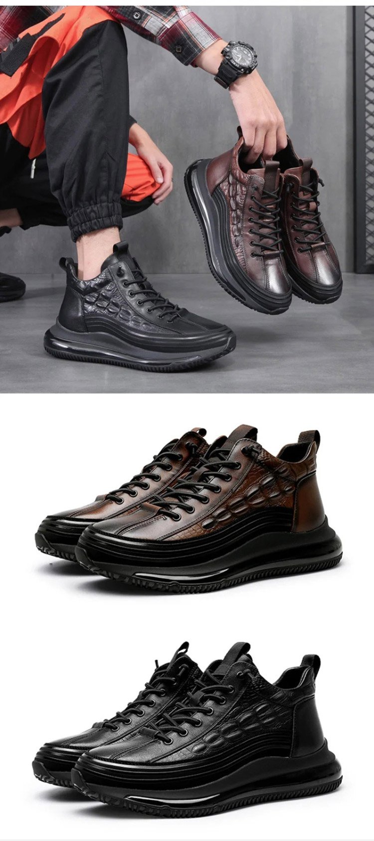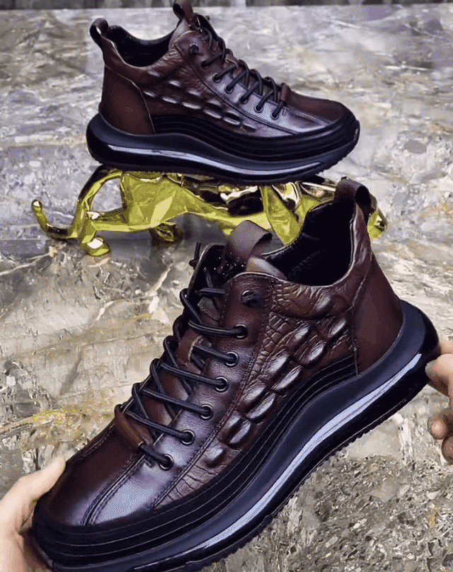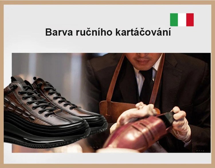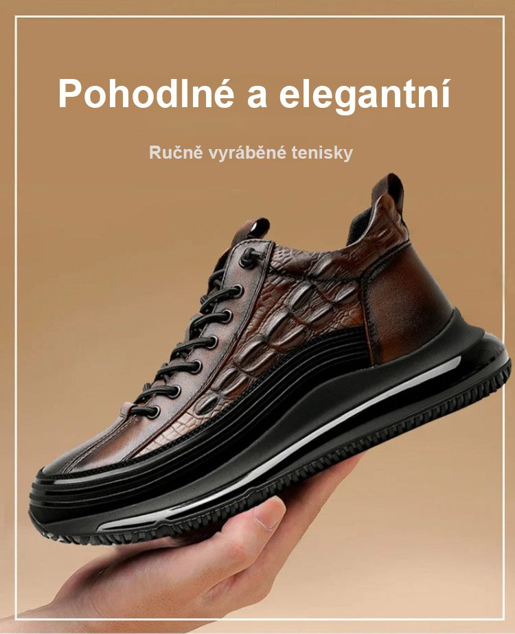 Italské luxusní pánské tenisky s krokodýlím vzorem a silnou podrážkou.