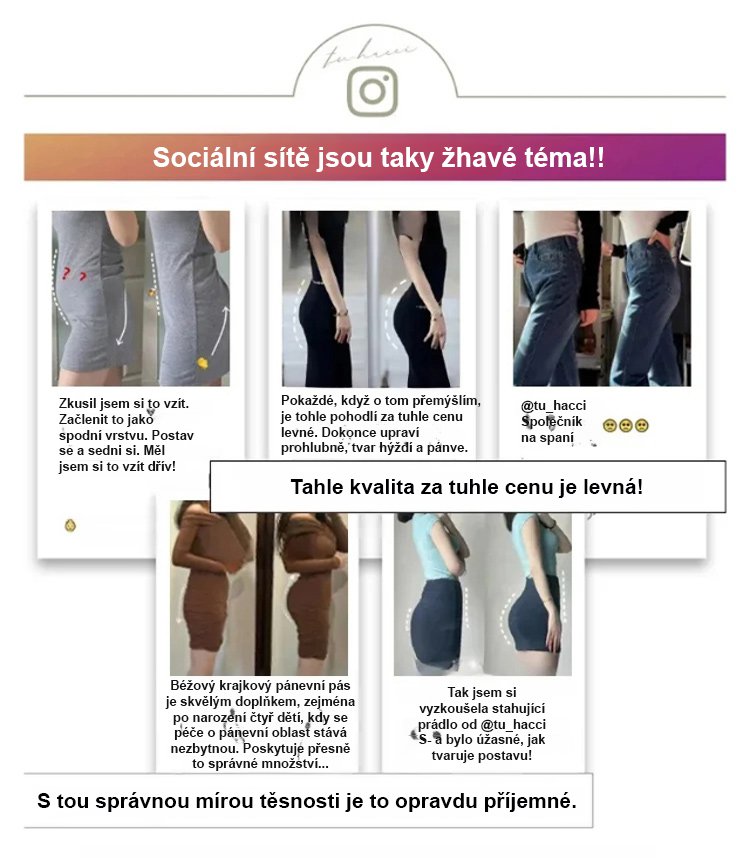 Konstrukce s vysokým pasem + funkce korekce pánve pro dosažení zeštíhlujícího efektu až 5 kg v oblasti břicha a dokonce i vytvoření průhledné pokožky!