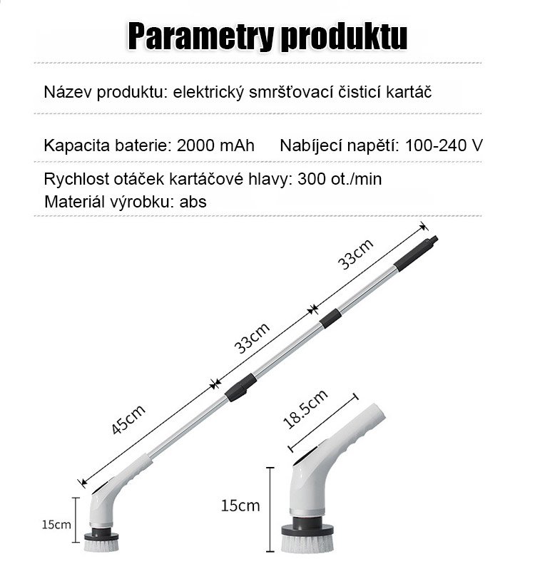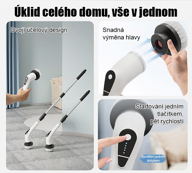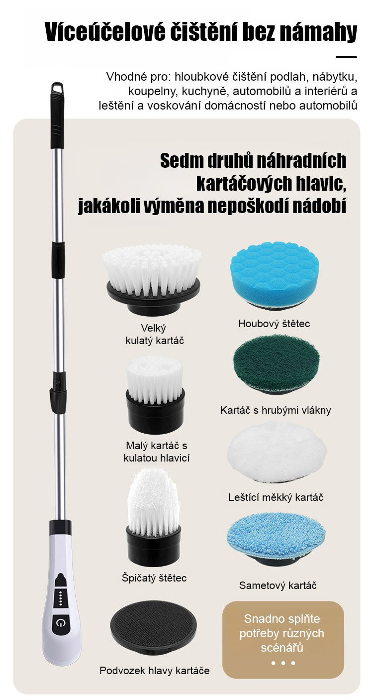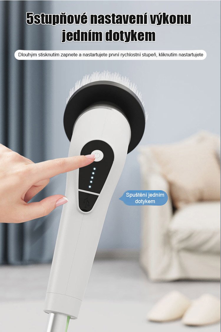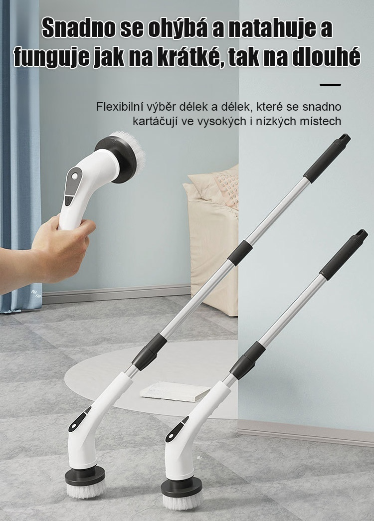 Bezdrátový elektrický čisticí kartáč s dlouhou rukojetí