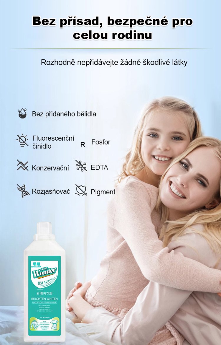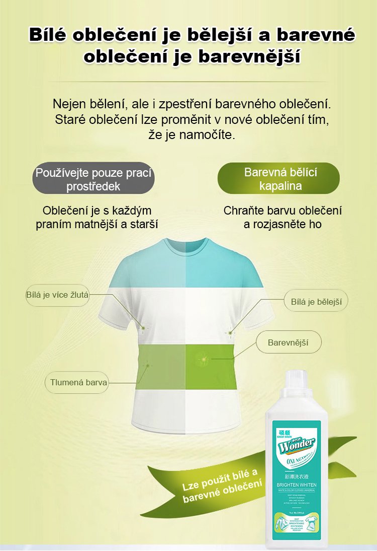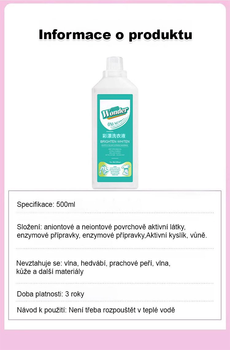 Jít na zesvětlení a rozjasnění aktivním kyslíkem čisticí kapalina na barevné prádlo
